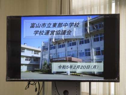 20日(月)第3回 学校運営協議会 公開日 2023/02/20 更新日 2023/02/20 東部中学校の様子 今年度、第3回の学校運営協議会が開催されました。 今年度の教育活動を見直したり、次年度の教育活動に向けた方策について、活発な協議が行われました。よりよい東部中学校とするため、是非とも協議内容を生かしていきたいと思います。