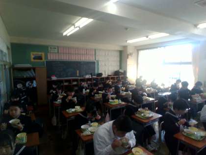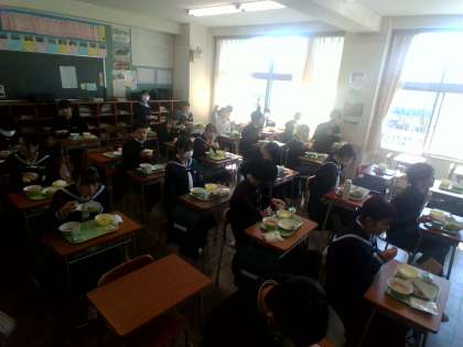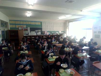 3年生の学校生活の様子を紹介します。 テストを終えた後の給食の様子です。