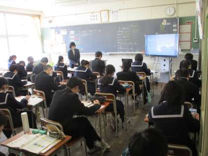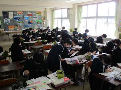 2年生の授業の様子を紹介します。 【写真上:英語】 【写真中:美術】 【写真下:保健体育】