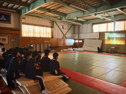 1年生の授業の様子を紹介します。 【写真上:保健体育】 【写真中:数学】 【写真下:英語】