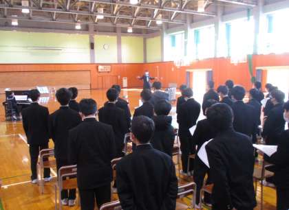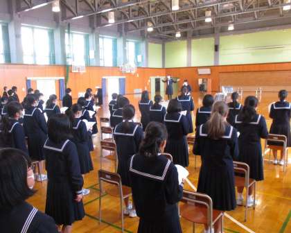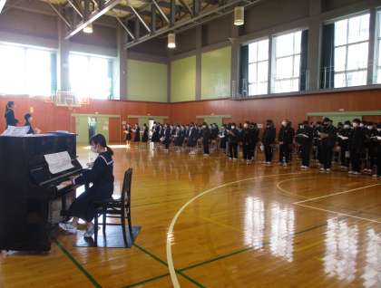6日(月) 2年 合唱練習 公開日 2023/03/06 更新日 2023/03/06 2学年 本日5限、2年生は学年集会で、卒業生に送る歌の練習を行いました。 お世話になった先輩方への想いを込めて、当日は是非とも感動的な合唱を届けたいと思います。