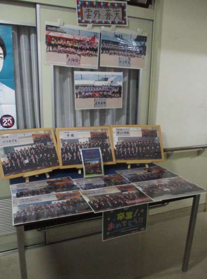 9日(木)Memories of Our School Life 公開日 2023/03/09 更新日 2023/03/09 3学年 3年生の皆さん、2日間の県立高校一般入試、お疲れ様でした! さて、いよいよ来週は卒業を迎えますね。 保健室前廊下に設置されている、恒例の「祝 卒業展示」は、もう見ましたか? 卒業までのカウントダウン・・・進みます!