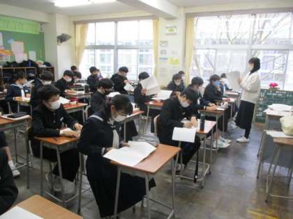 2年生の授業の様子を紹介します。 【写真上:家庭科】 【写真中:英語】 【写真下:数学】
