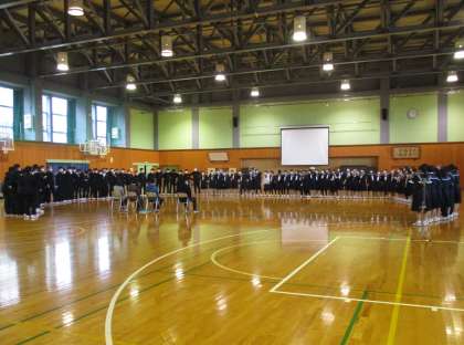 学年全体で先生方を囲み、代表生徒の挨拶とともに松尾先生イチオシの曲を全員で歌いました。ほんの短い時間でしたが、とっても素敵なひとときでした。