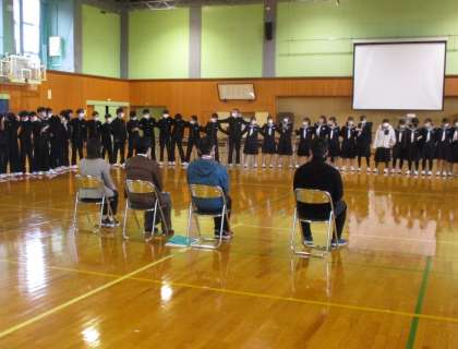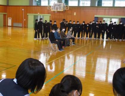 「卒業生を祝う会」が終わり、1・2年生が退場した後、3年生から3年担当の先生方にサプライズ企画がプレゼントされました。