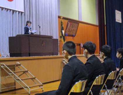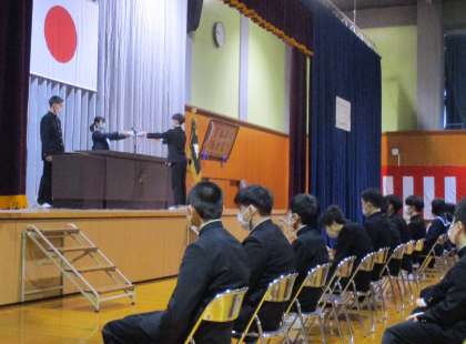 14日(火) 生徒会卒業記念品授与式 公開日 2023/03/14 更新日 2023/03/14 東部中学校の様子 2限には1・2年生も加わり、生徒会卒業記念品授与式が行われました。 生徒会長から記念品が授与された後、代表生徒から記念品授与へのお礼が述べられました。