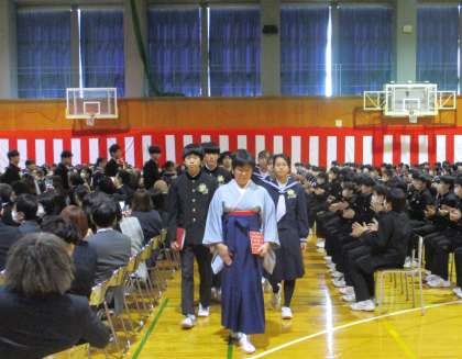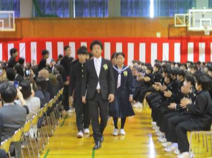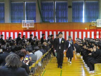 卒業証書授与式が終わり、熱い想いを胸に卒業生が退場しました。