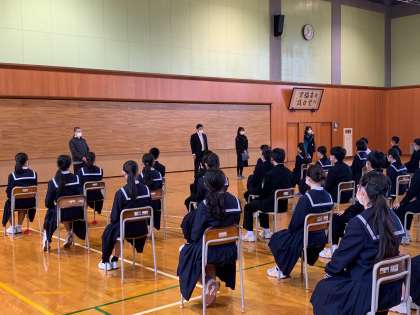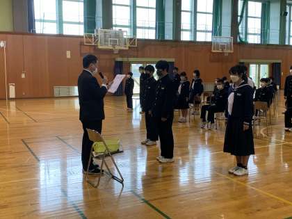 23日(木) 学年集会【1学年】 公開日 2023/03/23 更新日 2023/03/23 1学年 1年生は、今年度最後の学年集会を行いました。 先日行われた「都道府県コンテスト」の表彰や、春休みについてのお話、1年間お世話になった先生方からの挨拶などがありました。