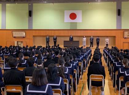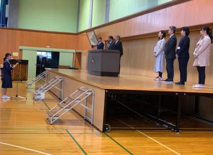 24日(金) 退任式・離任式 その1 公開日 2023/03/24 更新日 2023/03/24 東部中学校の様子 今年度で退職を迎えた3名の先生方と今年度で東部中学校を去られる4名の先生方に対する退任式・離任式を行いました。 各先生方の紹介と挨拶の後、生徒代表からの謝辞が送られました。
