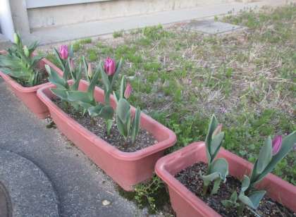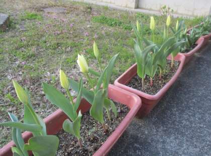 30日(木)ついに・・・チューリップ 公開日 2023/03/30 更新日 2023/03/30 東部中学校の様子 まだ風は冷たく感じますが、連日の春めいた晴天。 なんと! すでにプランターのチューリップが開花しようとしています!!
