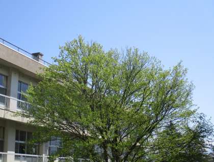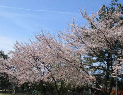 うららかな春の日・・・木々の緑に舞う桜の花びら。
