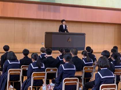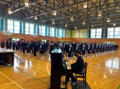 守田校長先生からの式辞の後、今年度初めて校歌を斉唱しました。
