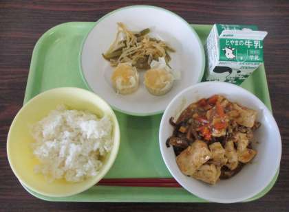 7日(金) きょうの給食 公開日 2023/04/07 更新日 2023/04/07 今日の給食 今日の給食を紹介します。上左から 平皿(茎わかめのチョナムル、にんじんシューマイ) 牛乳 マーボー豆腐 ごはん 今日は、今年度の給食初日でした。今年度も、おいしい給食をいただけることに感謝しましょう。 1年生も来週月曜の給食スタートが楽しみですね。