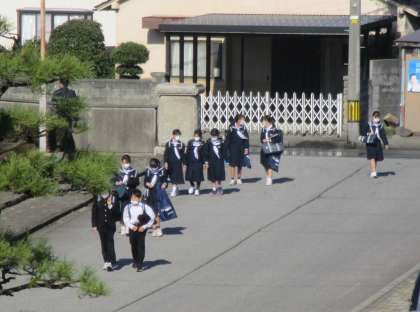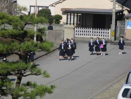 気持ちよく晴れ渡った空の下、本日から全学年揃っての登校となりました。