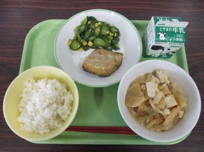 「すき煮」とは、すき焼き風の煮物で、「すき焼き」と違って、だし汁を入れて具材を一緒に煮込んだ料理だそうです。最後に白煎りごまを振り入れることで、香ばしいごまのかおりがプラスされています。