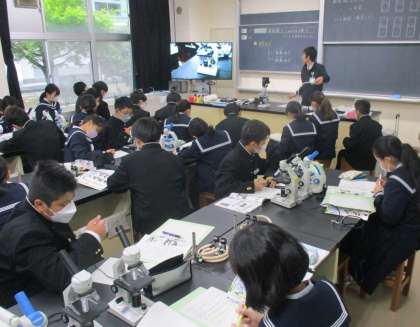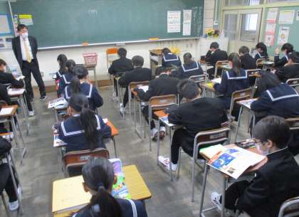 1年生の授業の様子を紹介します。 【写真上:理科】 【写真中:社会】 【写真下:国語】