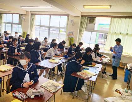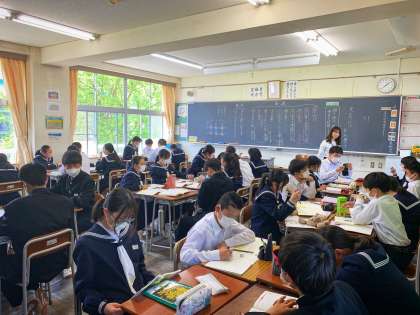 2年生の授業の様子を紹介します。 【写真上:理科】 【写真中:美術】 【写真下:国語】