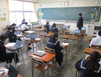 ネット環境の不具合を避けるため、10名程度のグループに分けて調査に取り組みました。