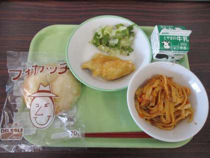 本日のサミット給食はイタリアの献立でした。「コントルノ」は付け合わせのことで、「フォカッチャ」はピザの原型とも言われるイタリア風のパンです。