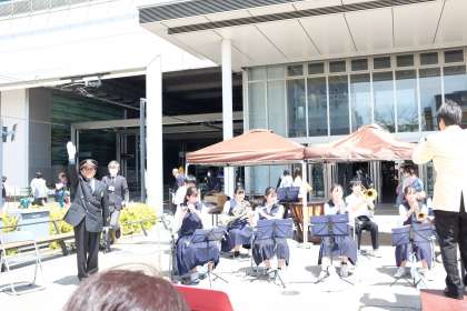前に用意された座席約200席は演奏前から埋まり、演奏する場所の360°の周囲から聞いて頂くという状況で、最初は緊張気味でした。しかし、曲を演奏するごとにお客さんの数も、拍手も大きくなり、いつも通りの力強いサウンドを鳴らしていました。