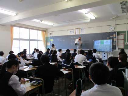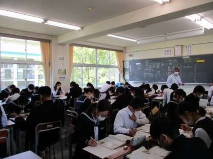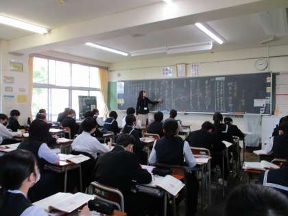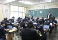 2年生の授業の様子を紹介します。 【写真上:英語】 【写真中:国語】 【写真下:社会】