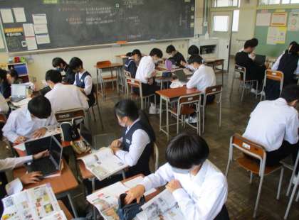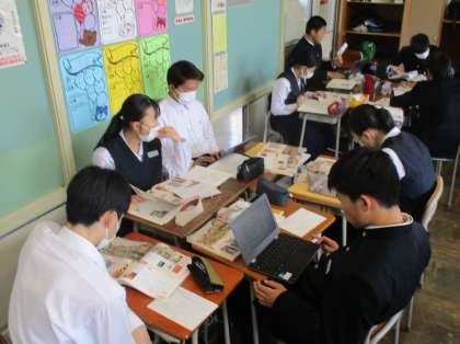 社会の歴史分野では、「大正期の教育と文化」について、資料集やクロムブックを活用して、グループ毎に調べ学習を進めました。