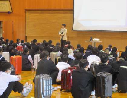 9日(火)3年 修学旅行【出発式】 公開日 2023/05/09 更新日 2023/05/09 3学年 いよいよ明日に迫った修学旅行。本日は5限に出発式を行いました。 思い出深い旅行となるよう、しっかりルールは守った上で、大いに学び大いに楽しみましょう!