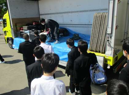 9日(火)3年 修学旅行【荷物の積み込み】 公開日 2023/05/09 更新日 2023/05/09 修学旅行 大きな荷物は、1日目の宿泊場所である奈良のホテルへ直行です。積み込みの際、荷物を手渡す生徒の表情は、すでにワクワク感に溢れていました。 明日の集合完了時刻は6時。 寝坊しないよう、是非とも今夜は早めに就寝しましょう。