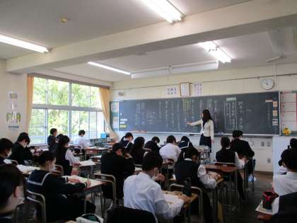2年生の授業の様子を紹介します。 【写真上:保健体育】 【写真中:数学】 【写真下:国語】