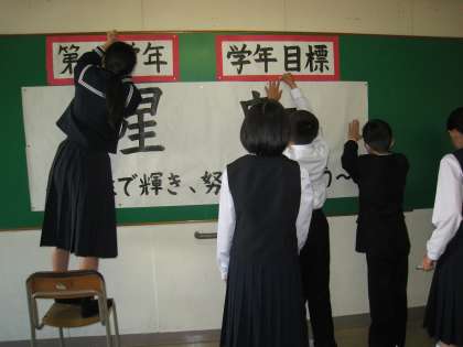 昨日発表した学年目標を掲示しました。