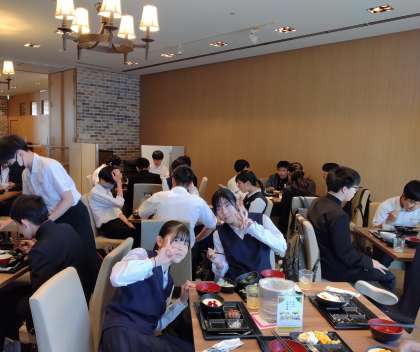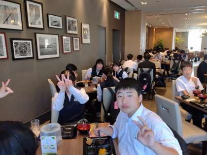 12日(金)3年 修学旅行3日目【朝食】 公開日 2023/05/12 更新日 2023/05/12 修学旅行 ユニバーサルポートホテルに朝が来ました。 今日もお天気に恵まれそうです。 生徒たちは元気に朝ごはんをいただいています。