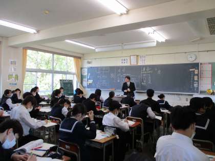2年生の授業の様子を紹介します。 【写真上:保健体育】 【写真中:数学】 【写真下:理科】