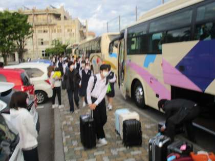 12日(金)修学旅行3日目【帰着】 公開日 2023/05/12 更新日 2023/05/12 修学旅行 2泊3日の全行程を終えた3年生が修学旅行から帰ってきました。 旅の楽しさを物語る充実した表情で家路につきました。 帰宅後は、旅の土産話をたっぷりと、そして、ゆっくりと休んで疲れを癒やしてください。