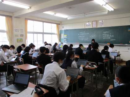 修学旅行を終えて、平和学習の事後学習発表会に向けて、各自でスライド作りをしました。