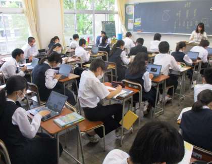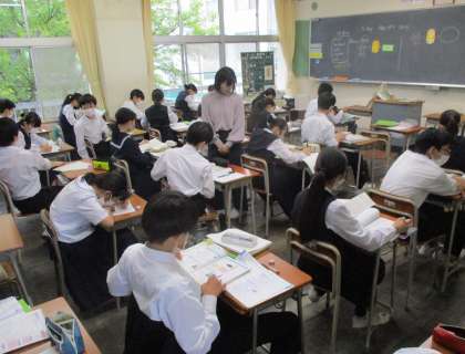 2年生の授業の様子を紹介します。 【写真上:国語】 【写真中:英語】 【写真下:保健体育】