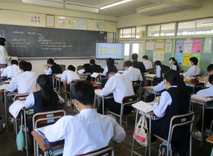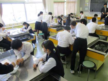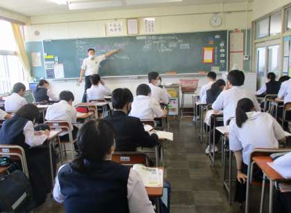 3年生の授業の様子を紹介します。 【写真上:家庭科】 【写真中:英語】 【写真下:社会】