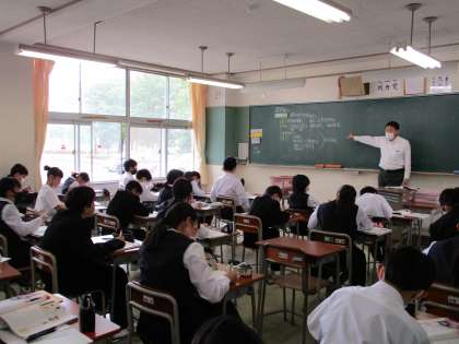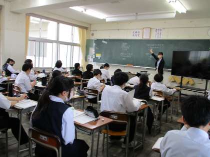 1年生の授業の様子を紹介します。 【写真上:社会】 【写真中:数学】 【写真下:保健体育】
