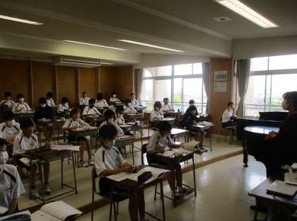 1年生の授業の様子を紹介します。 【写真上:数学】 【写真中:音楽】 【写真下:保健体育】