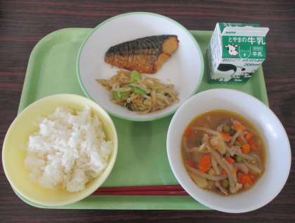 1日(木) きょうの給食 公開日 2023/06/01 更新日 2023/06/01 今日の給食 今日の給食を紹介します。上左から 平皿(さばの塩焼き、香味和え) 牛乳 豚肉の南蛮煮 ごはん 「南蛮煮」は、岐阜県に伝わる郷土料理で、地元の方言で「南蛮」や「葉南蛮」などと呼ばれるトウガラシの実をさっと茹でて軽く炒め、醤油やみりん、砂糖などを加えて煮詰めたものです。