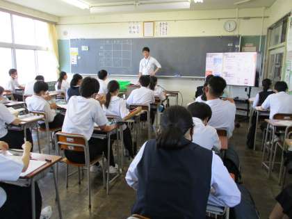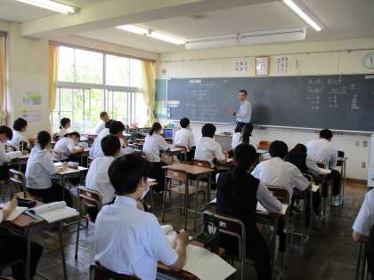 3年生の授業の様子を紹介します。 【写真上:保健体育】 【写真中:理科】 【写真下:数学】