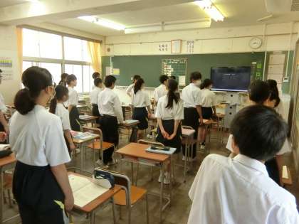 9日(金)校歌コンクールの練習【1学年】 公開日 2023/06/09 更新日 2023/06/09 1学年 1学年では、12日(月)の学年集会で校歌コンクールを行います。 各学級で、朝学習の時間を利用して練習をしています。
