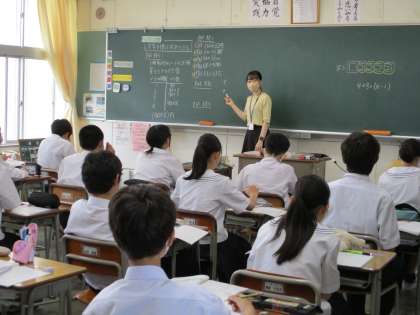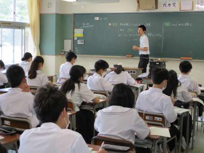 1年生の授業の様子を紹介します。 【写真上:理科】 【写真中:数学】 【写真下:英語】