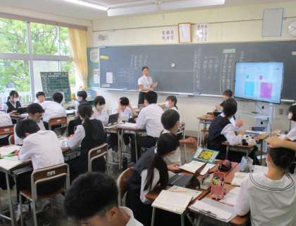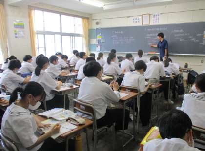 2年生の授業の様子を紹介します。 【写真上:国語】 【写真中:数学】 【写真下:保健体育】