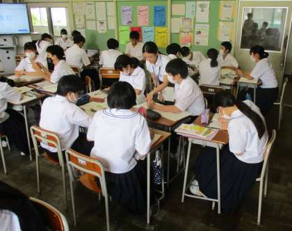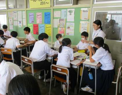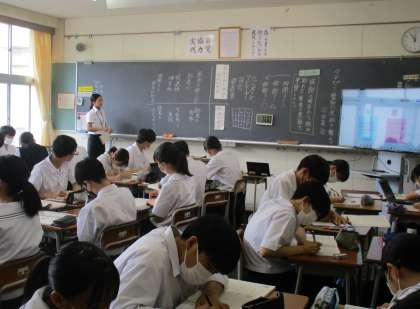 15日(木)教育実習 研究授業【2学年】 公開日 2023/06/15 更新日 2023/06/15 2学年 本日3限、教育実習生の村松先生が、国語の研究授業を行いました。 「クマゼミ増加の原因を探る」という単元で、文章構成の意図について、クロムブックを活用したグループ学習に取り組みました。