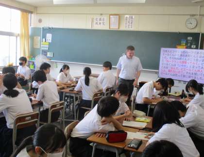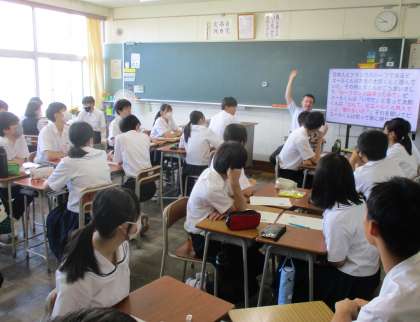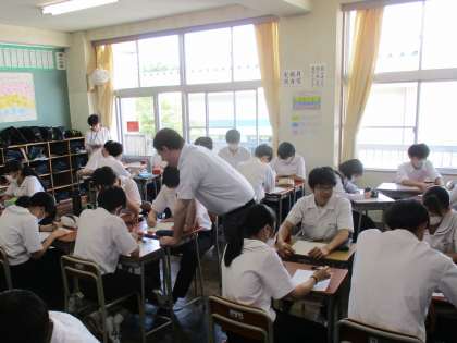 20日(火)教育実習 研究授業【3学年】 公開日 2023/06/20 更新日 2023/06/20 3学年 本日1限、教育実習生のアンソニー先生が、道徳の研究授業を行いました。 「外国人て何?」という教材で、グループでの話合い等を通して、差別や偏見をもたず国際理解の気持ちを育む態度について考えました。