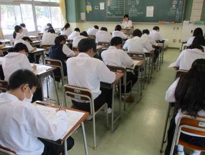 1年生の期末考査最終日の様子を紹介します。 これまでの学習の成果を発揮できましたか?