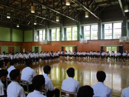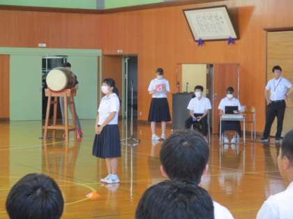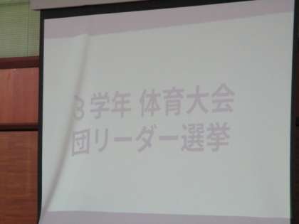 29日(木)体育大会団リーダー選挙演説【3学年】 公開日 2023/06/29 更新日 2023/06/29 3学年 本日1限、3学年は体育館で体育大会団リーダー候補による選挙演説会を行いました。 演説時間60秒間という短い時間の中、各候補者、体育大会で頑張りたいことなどを一生懸命アピールしました。 その後に行った「決選投票」と「信任投票」で、団リーダーが決まります。