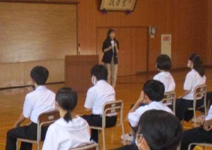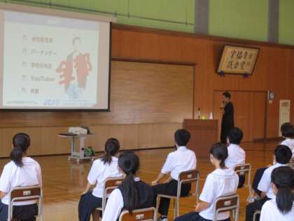 29日(木)「自分の未来を想像しよう」【2学年】 公開日 2023/06/29 更新日 2023/06/29 東部中学校の様子 本日6限、富山青年会議所の方々をお招きし、2年生対象に「人生は選択だ〜自分の未来を想像しよう〜」というテーマで講演していただきました。 村上さんと坂田さんの2名の講師によるお話は、再来週に実施する「社会に学ぶ『14歳の挑戦』」に向けて、大いに意欲を高められたようです。