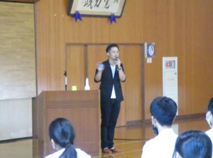 29日(木)「自分の未来を想像しよう」【2学年】 公開日 2023/06/29 更新日 2023/06/29 東部中学校の様子 本日6限、富山青年会議所の方々をお招きし、2年生対象に「人生は選択だ〜自分の未来を想像しよう〜」というテーマで講演していただきました。 村上さんと坂田さんの2名の講師によるお話は、再来週に実施する「社会に学ぶ『14歳の挑戦』」に向けて、大いに意欲を高められたようです。