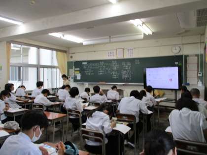 1年生の授業の様子を紹介します。 【写真上:美術】 【写真中:数学】 【写真下:英語】